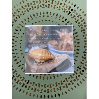 Motif avec photo d'une madeleine présentée telle quelle dans la chambre de Tante Léonie